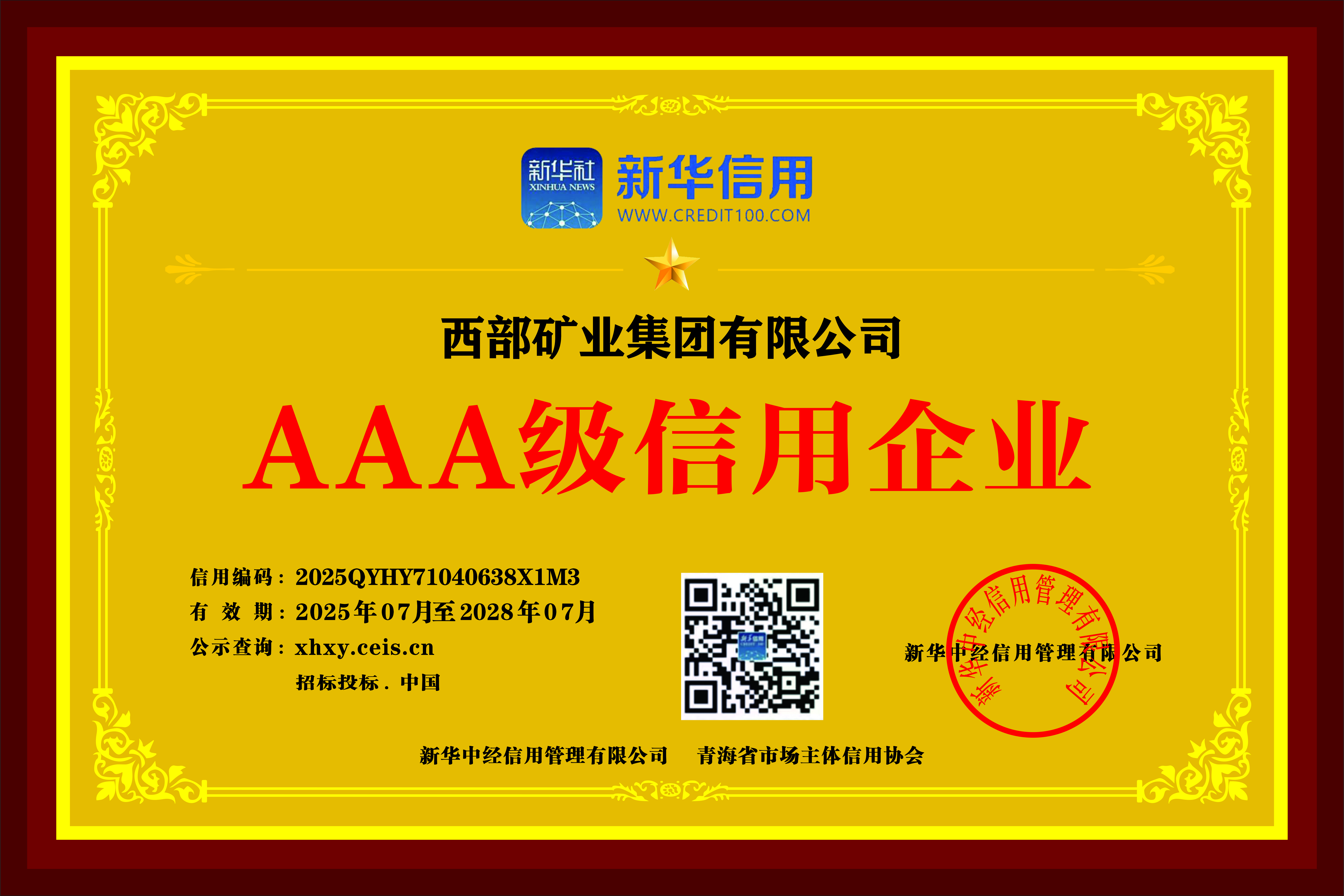 近日,我省协会会长单位西部矿业集团有限公司凭借在经营管理、合同履约、信用管理等方面的优秀表现,经国家级综合信用服务平台新华社新华信用严格评审并公示,评获“AAA企业信用等级证书、AAA重合同守信用企业证书、AAA资信等级证书”认证,为企业进一步提升品牌影响力和竞争力注入新动能。