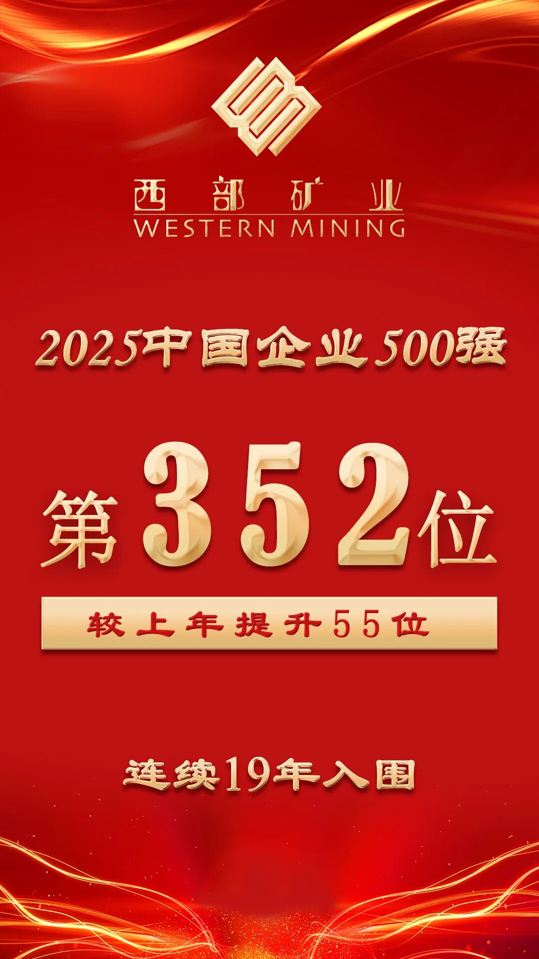 9月15日,2025中国企业500强新闻发布会在北京召开,中国企业联合会、中国企业家协会连续第24次向社会发布了“中国企业500强” 榜单。西部矿业集团有限公司以营业收入687.96亿元入围中国企业500强,排名第352位,较上年提升55位,营业收入较上年增加96.86亿元,这是公司连续第19年入围中国企业500强榜单,也是青海省唯一入围企业。