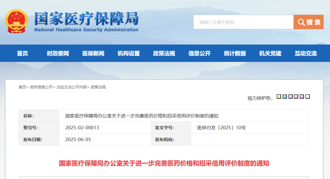 6月5日,国家医疗保障局印发了《关于进一步完善医药价格和招采信用评价制度的通知》,对价格招采信用评价制度进行修订。此次修订在坚持原有制度框架的基础上,对评价的档次、依据等做了调整:一是在原有法院判决案例和相关执法行政部门处罚决定的基础上增加了审计报告、审计信息、审计移送处理书等案源信息。二是将“一般”“中等”“严重”“特别严重”四档失信等级调整为“失信”“严重失信”“特别严重失信”三档,并相应从严调整了评价标准。三是精准加大惩戒力度。对失信行为涉及向医疗保障部门(含医药集中采购机构)工作人员行贿的,或在国家组织集中带量采购中围标串标的企业,一律按“特别严重失信”顶格处置。对“特别严重失信”生产企业,在中止其全部产品在评价省份的挂网、投标资格的同时,中止其涉案产品在所有省份的挂网、投标资格。四是完善相关程序。进一步完善失信行为的纠正措施,鼓励企业通过降价纠正,不再保留慈善公益捐赠的方式。