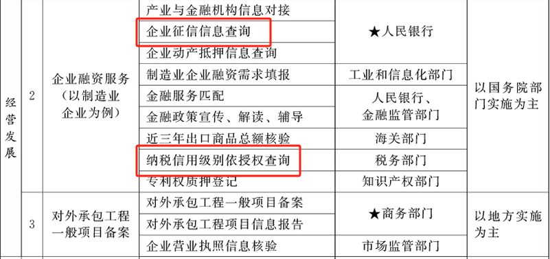 各地区各部门在加快推进2025年度第一批12个重点事项落地见效的基础上,统筹推进本次第二批9个重点事项清单实施,持续推动在更多领域更大范围实现“高效办成一件事”,进一步提升企业和群众获得感。新一批重点事项清单中,由人民银行和税务部门分别作为责任部门的“征信信息查询”及“纳税信用级别依授权查询”事项列入其中。