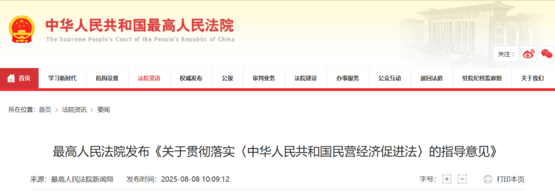 8月8日,最高人民法院发布《关于贯彻落实〈中华人民共和国民营经济促进法〉的指导意见》,提出健全失信惩戒和信用修复机制。严格依法依规开展失信惩戒,合理确定失信惩戒范围和力度,要精准区分“失信”与“失能”,发挥失信惩戒分级分类及守信激励作用。积极运用失信惩戒宽限期、单次解禁等制度。建立失信等级动态调整机制。进一步畅通信用修复渠道,让经营主体及时回归正常生产经营轨道。加强与国家发展改革委、金融机构、市场监管等单位的衔接联动,推动信用评级机构优化民营经济组织的评级方法,推动修复结果互享互认,增加信用评级有效供给。