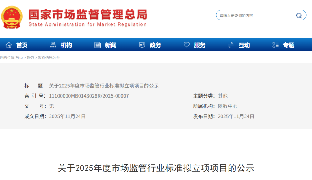 11月24日,中国网络安全审查认证和市场监管大数据中心组织开展了2025年度市场监管行业标准制修订项目申报工作。经各单位申报、业务主管司局初审、专委会专家评审,拟对《安全阀追溯标识技术规范》等46项标准予以立项,并将标准项目名称、申报单位予以公示。其中,由中国网络安全审查认证和市场监管大数据中心申报的《跨省信用修复数据规范》入选“2025年度市场监管行业标准拟立项项目清单”。