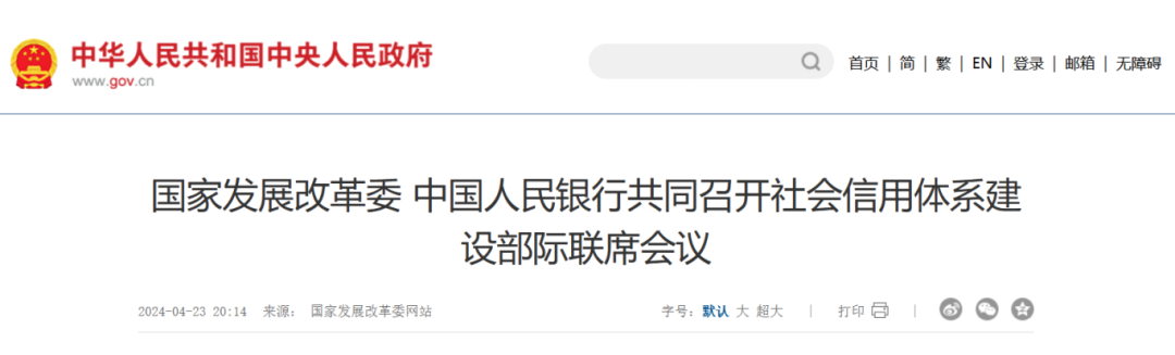 4月22日,国家发展改革委、中国人民银行组织召开社会信用体系建设部际联席会议暨工作部署会。国家发展改革委副主任李春临、中国人民银行副行长邹澜共同主持会议并讲话,国家发展改革委副秘书长肖渭明出席会议。