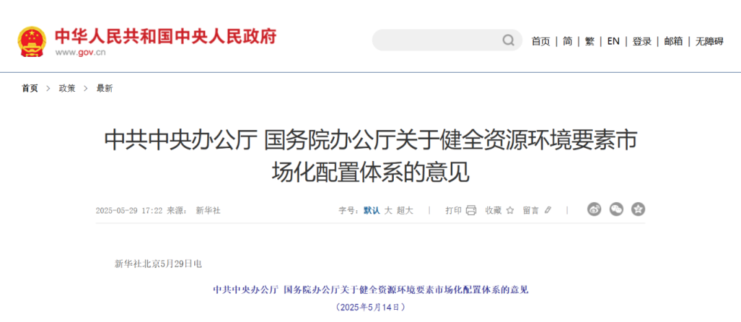 中办、国办:加快建设资源环境要素交易市场信用体系