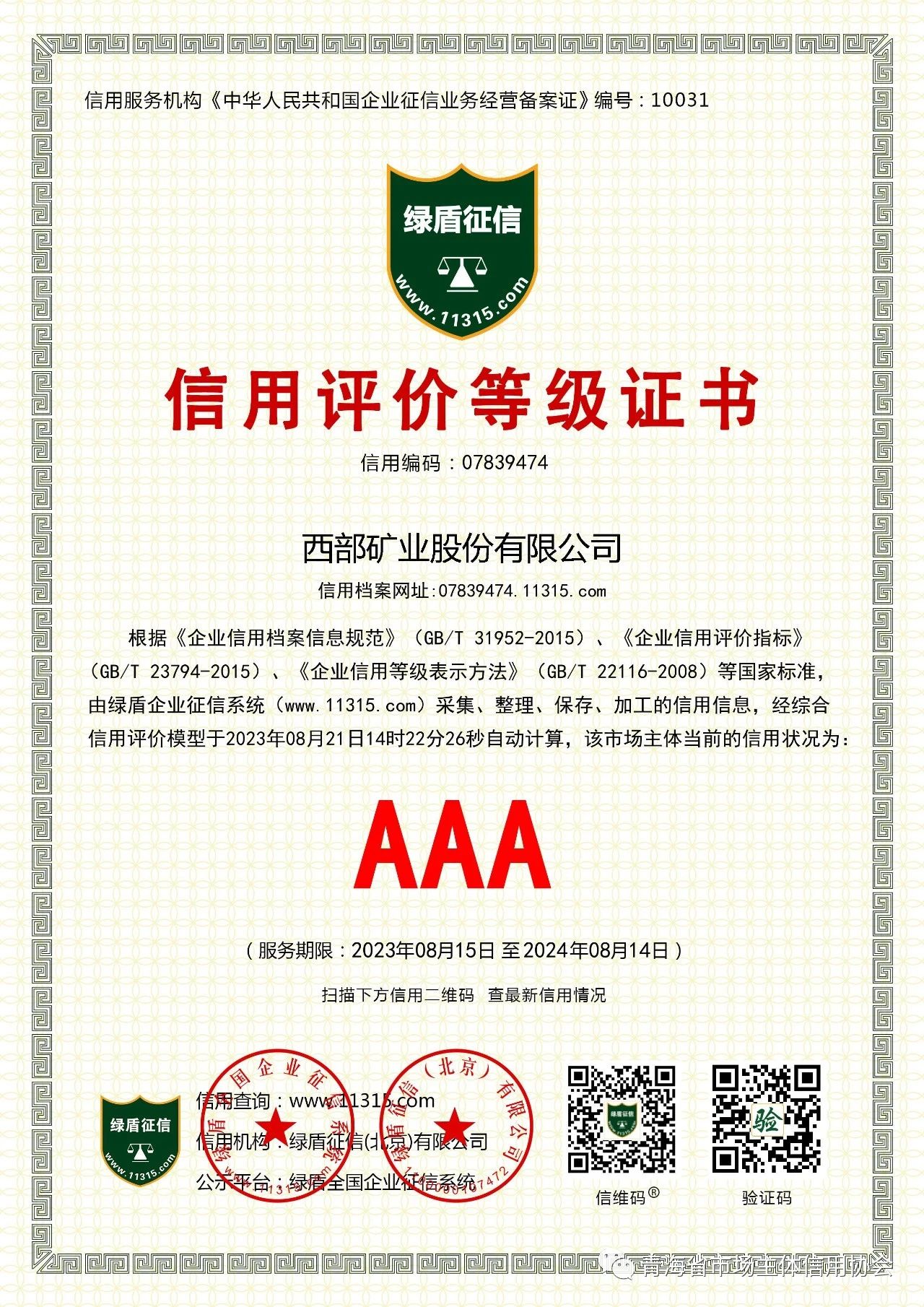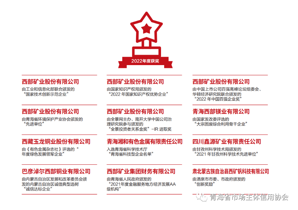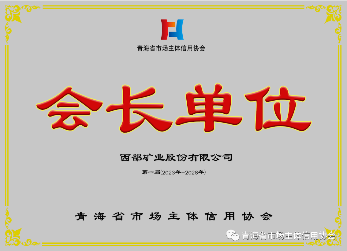西部矿业股份有限公司作为青海省市场主体信用协会会长单位,面对高质量发展新使命、新要求,以饱满的热情和昂扬的斗志,重整行囊再出发,向着新的奋斗目标继续前行,推进西部矿业在高质量发展道路上行稳致远。积极担当、主动作为,带头推进全省信用体系建设。