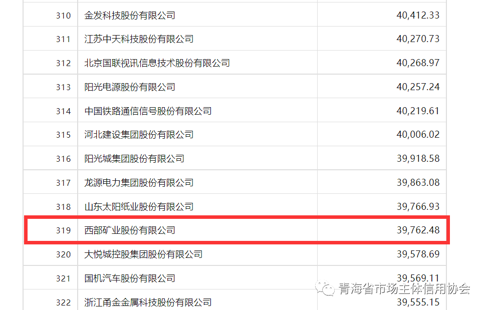 西部矿业股份有限公司荣登2023年《财富》中国上市公司500强 7月11日,《财富》发布2023年中国上市公司500强排行榜,西部矿业股份有限公司以营业收入397.62亿元的成绩,位居第319名,排名较上年上升4位。