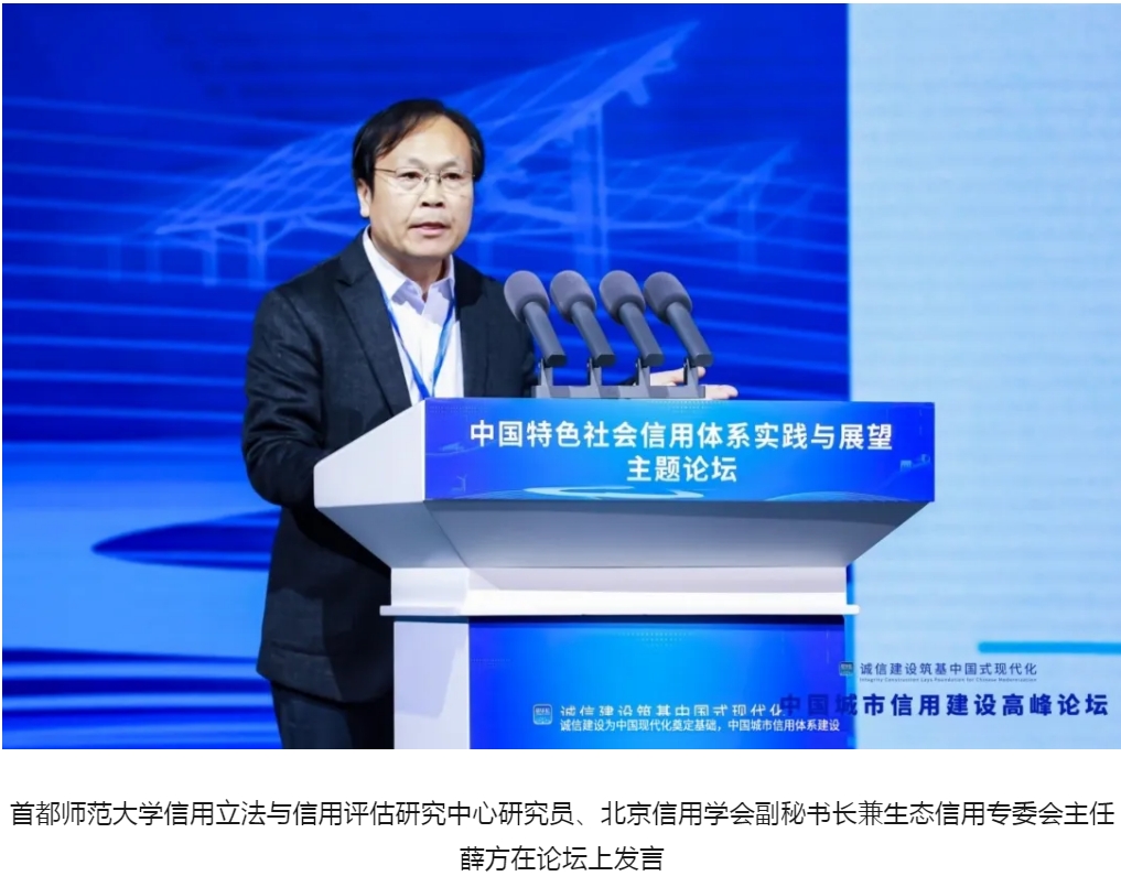20日 ,第六届中国城市信用建设高峰论坛在呼和浩特市举办。在“中国特色社会信用体系实践与展望”主题论坛上,首都师范大学信用立法与信用评估研究中心研究员、北京信用学会副秘书长兼生态信用专委会主任薛方表示,中国式现代化下的社会信用体系建设应进一步推进信用普惠、扩容信用经济、创新数字信用、打造生态信用、重塑国家信用。