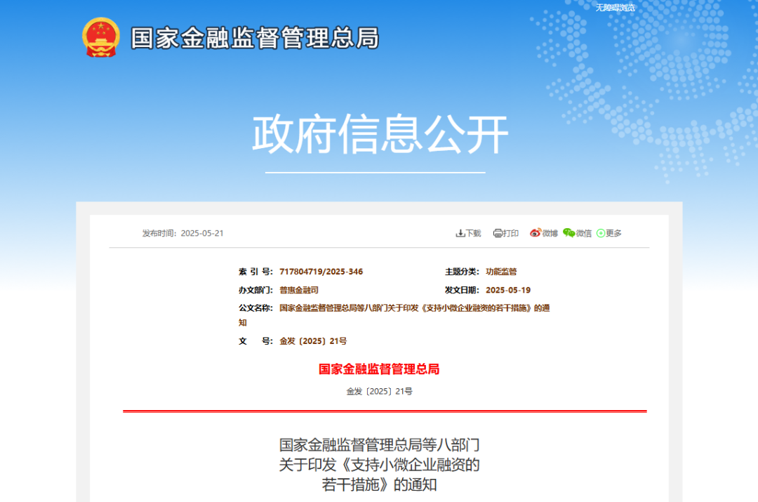 5月7日,国家金融监督管理总局办公厅发布《关于做好2025年小微企业金融服务工作的通知》,《通知》提出,加力支持小微外贸企业,依托进出口贸易场景及订单、物流等数据要素,提升信用评估和金融服务水平,促进稳外贸稳增长;优化金融服务供给。优化信贷结构,做好信用贷款、中长期贷款投放,强化小微企业法人服务;持续推进信用信息共享,推动提升数据质量,指导金融机构有效对接融资信用服务平台。