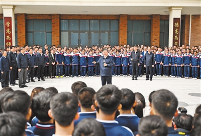6月18日至19日,中共中央总书记、国家主席、中央军委主席习近平在青海考察。这是18日下午,习近平在果洛西宁民族中学考察时,同师生们亲切交流。