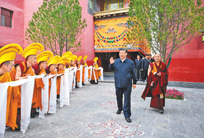6月18日至19日,中共中央总书记、国家主席、中央军委主席习近平在青海考察。这是18日下午,习近平在位于西宁市城中区的宏觉寺考察。